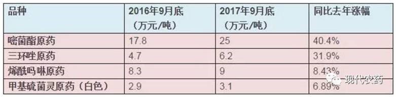 表2-3 涨幅大及货源紧张的杀菌剂品种