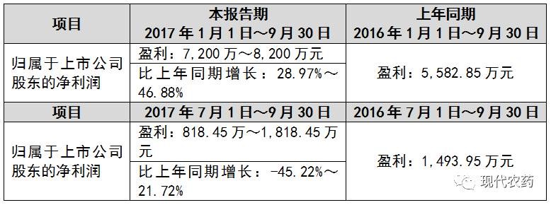 表5-1 江苏中旗科技股份有限公司2017年前三季度业绩预告情况表