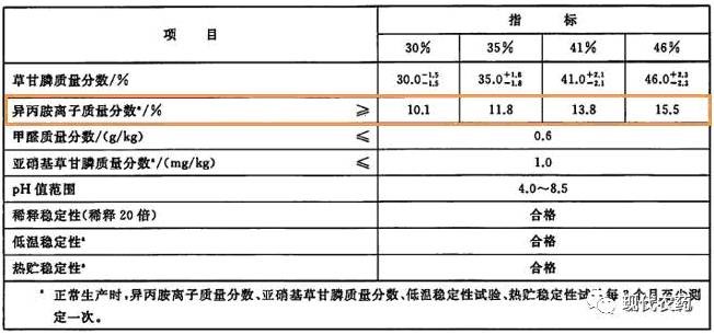 表4-2 草甘膦异丙胺盐水剂控制项目指标