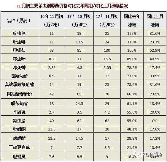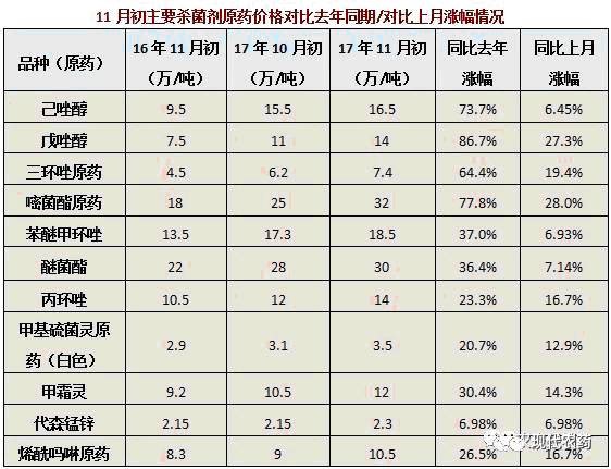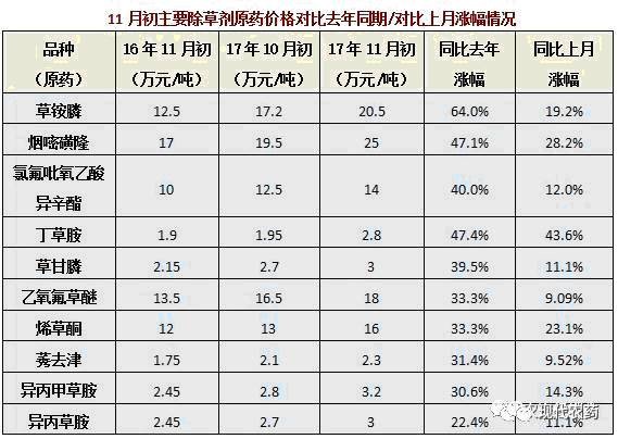 注:原药价格表来源中农立华原药事业部,截止日期11月6日,供参考!