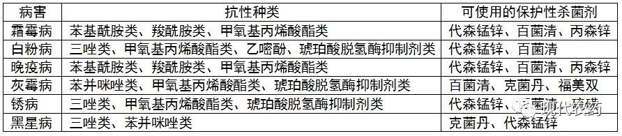 表3 传统保护性杀菌剂在抗性治理中的作用