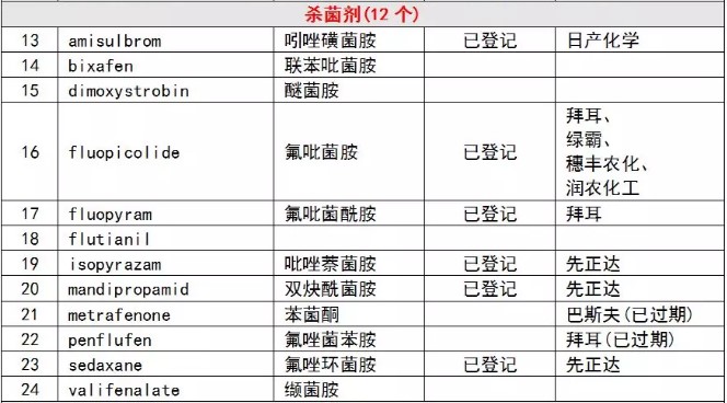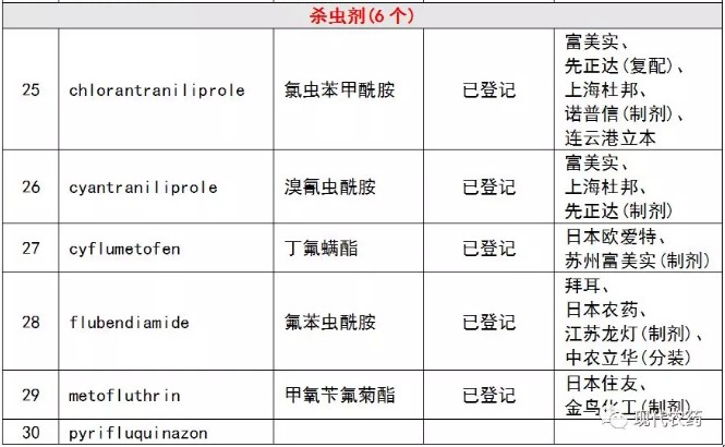 表4-1 2018—2023年30个专利到期农药及在我国的登记情况