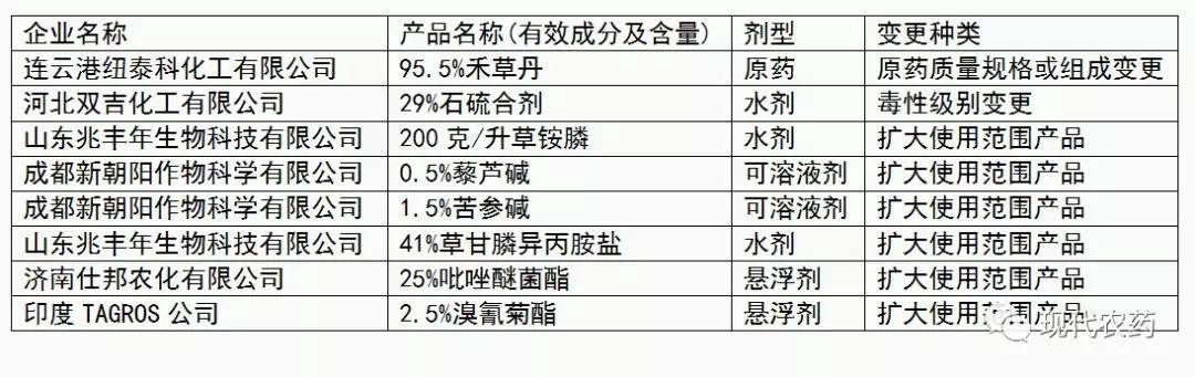 2019年3月1日,农业农村部农药检定所公示了申请登记的8个农药产品、